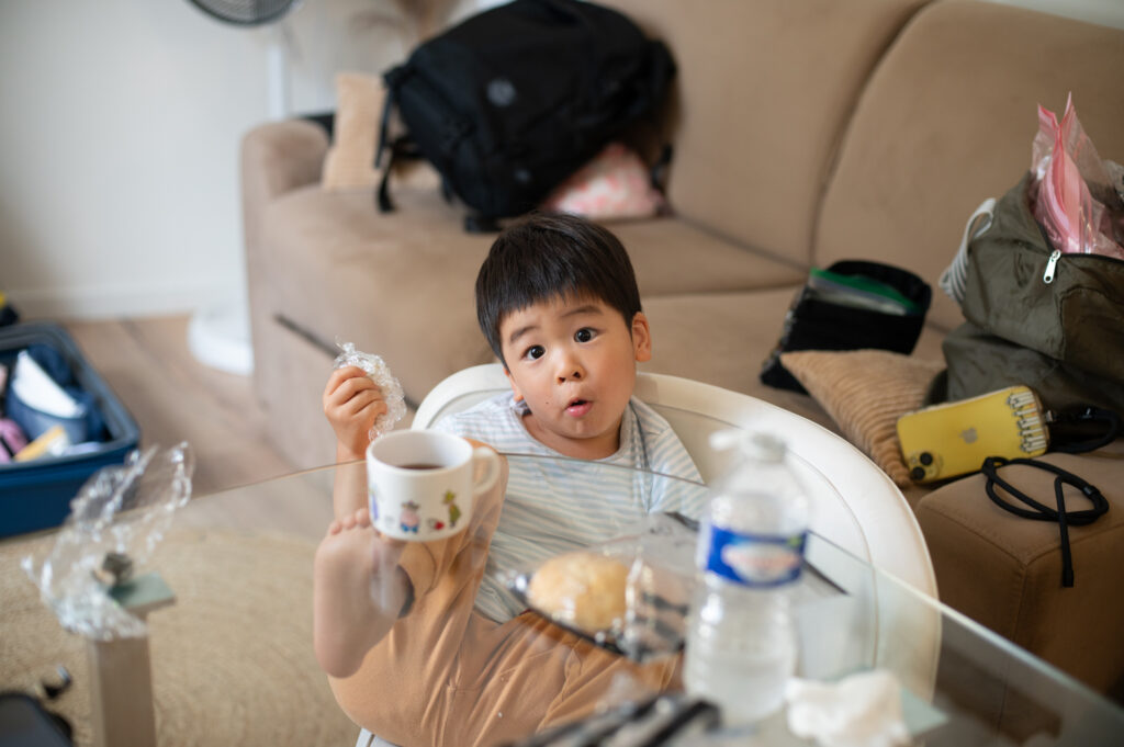 ハルが何を食べるか不安だったので米を持ってきていた。その米でおにぎりを食べた。