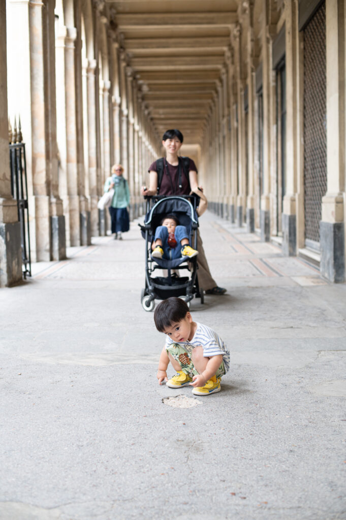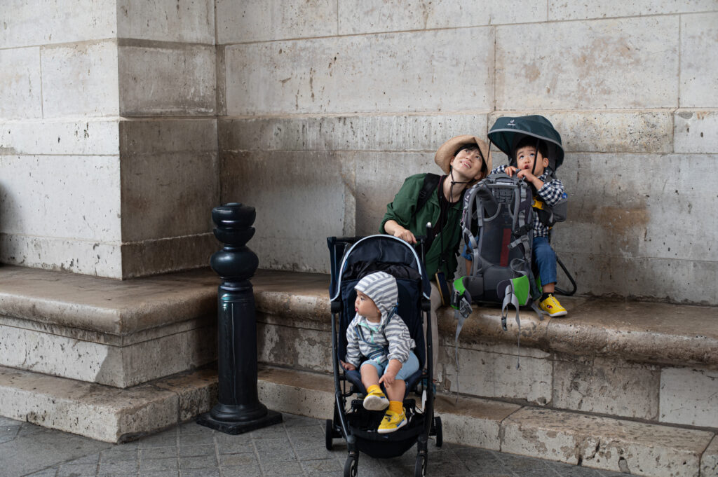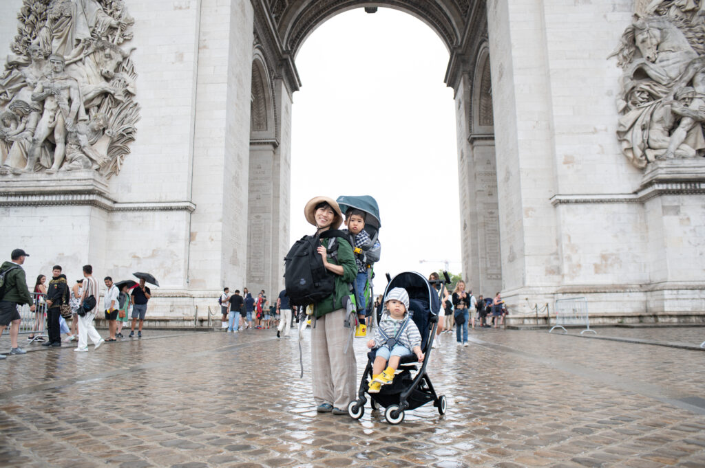この日はあいにくの小雨。凱旋門は大きな道路に囲まれているため、地下通路を通って行く必要があるのだけれど、雨は降っているし、ベビーカーでの移動は階段も多くてフットワークが重い。しかも入口が分かりづらく、早々に疲れてしまった。